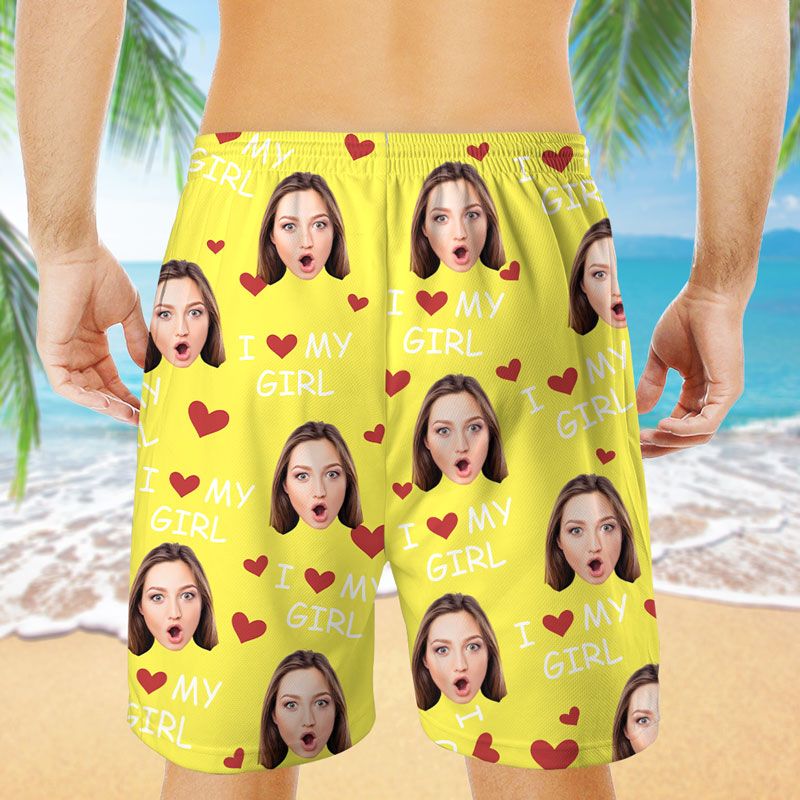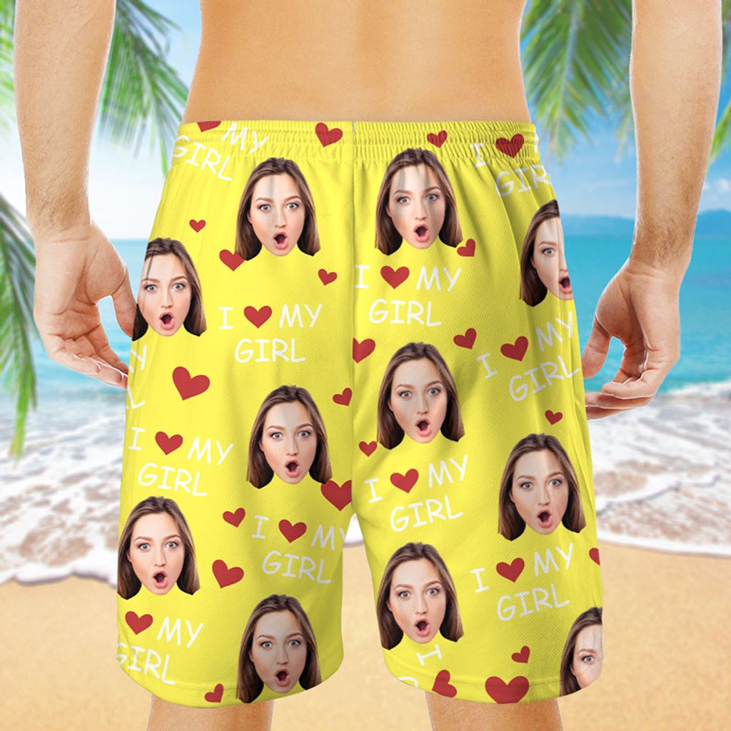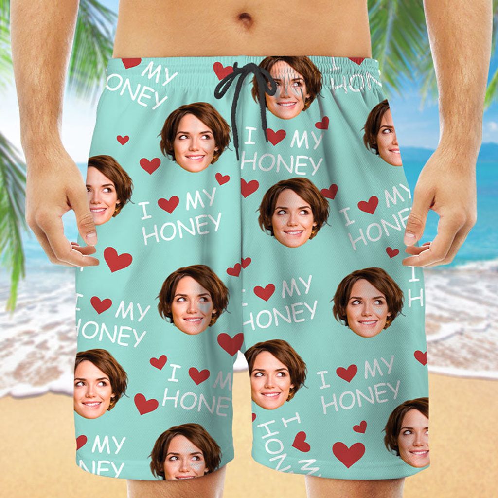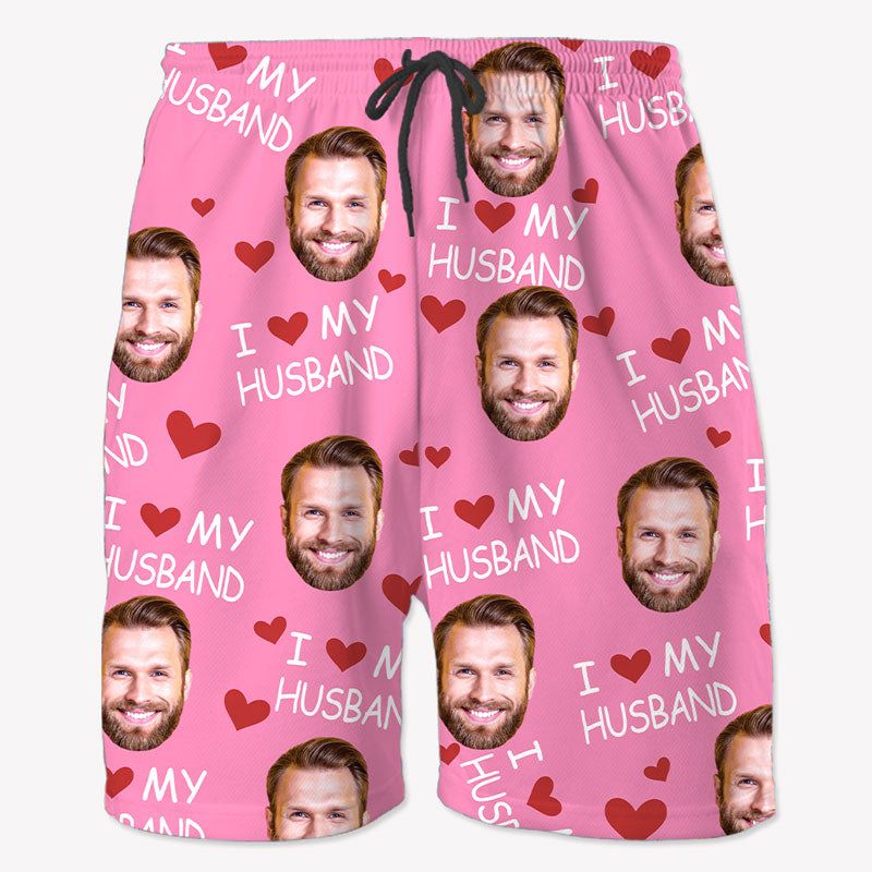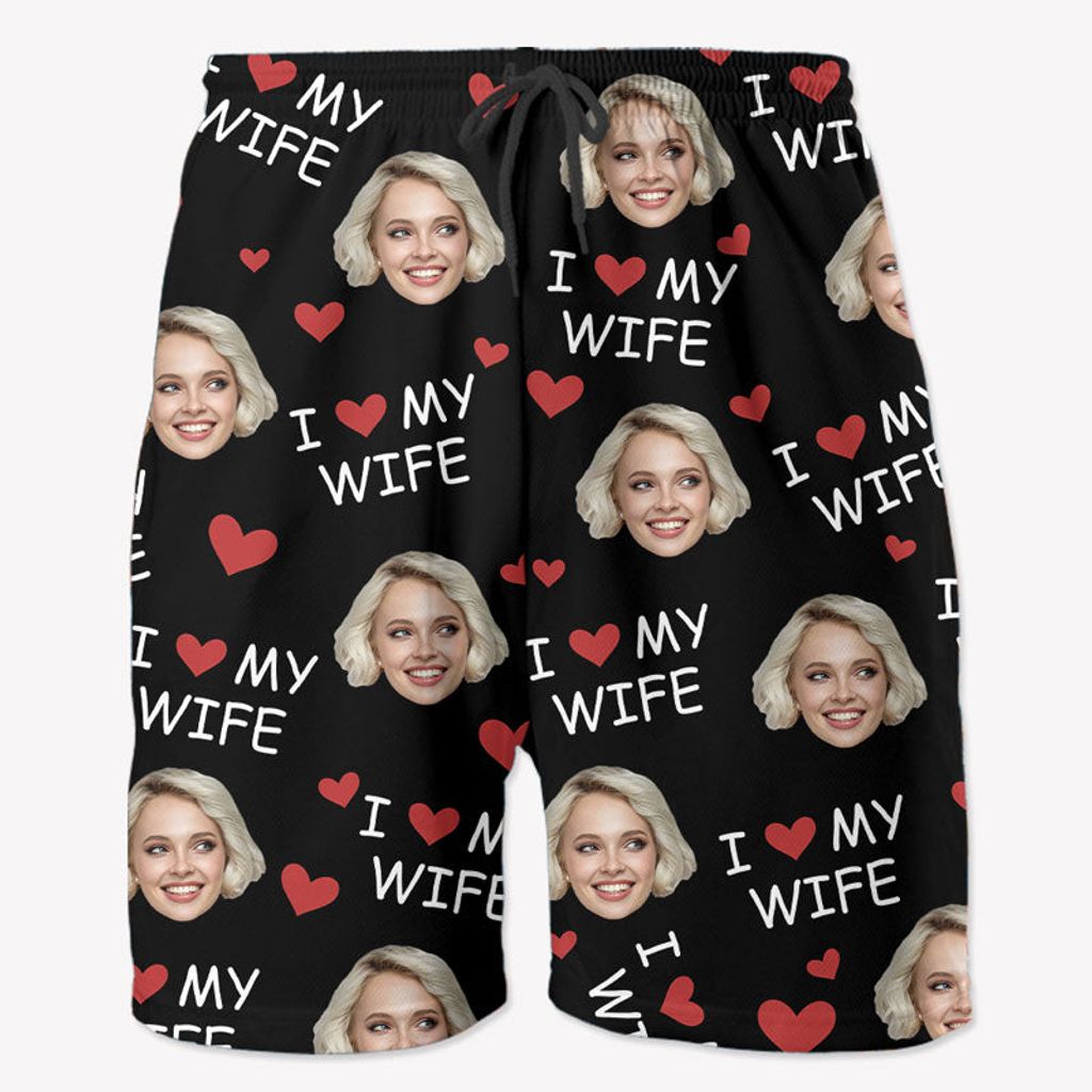 I Love My Wife, Personalized Beach Shorts, Funny Gift For Couple, Custom Photo