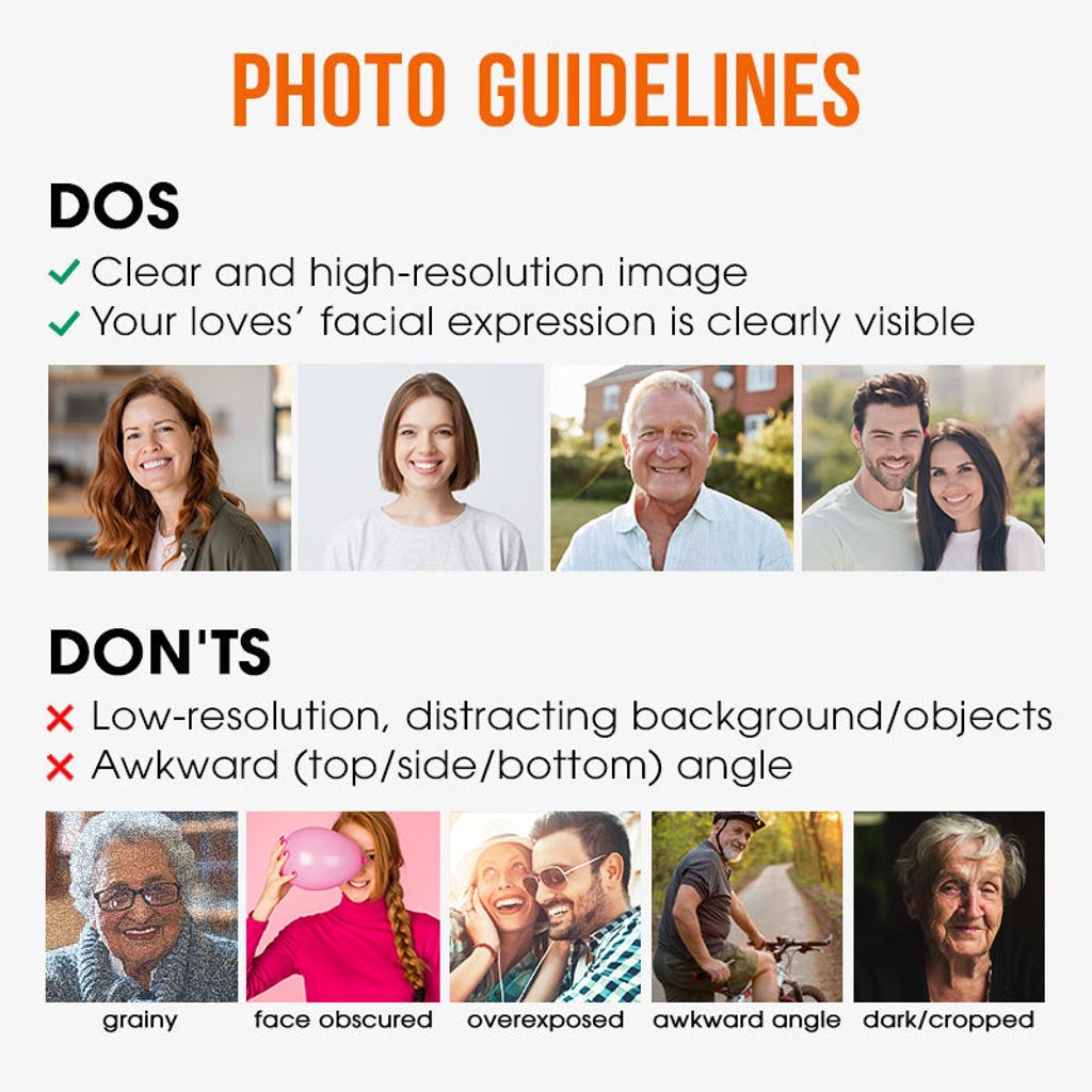 PREVIEW: Upload the photo(s) and click [REVIEW YOUR PERSONALIZATION] to see the Preview ❤️. Please double check your options before purchasing.