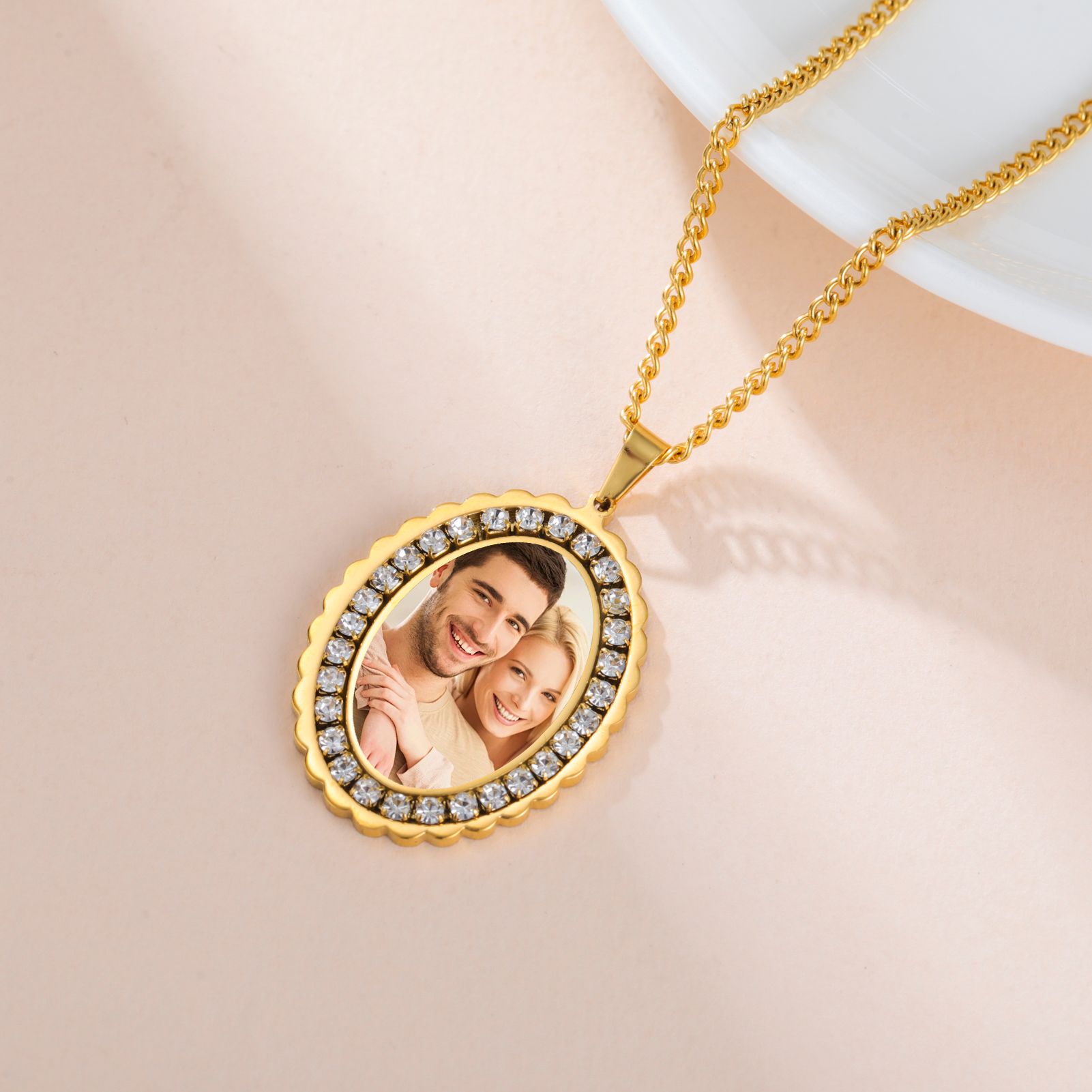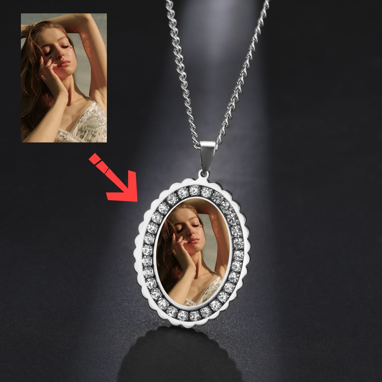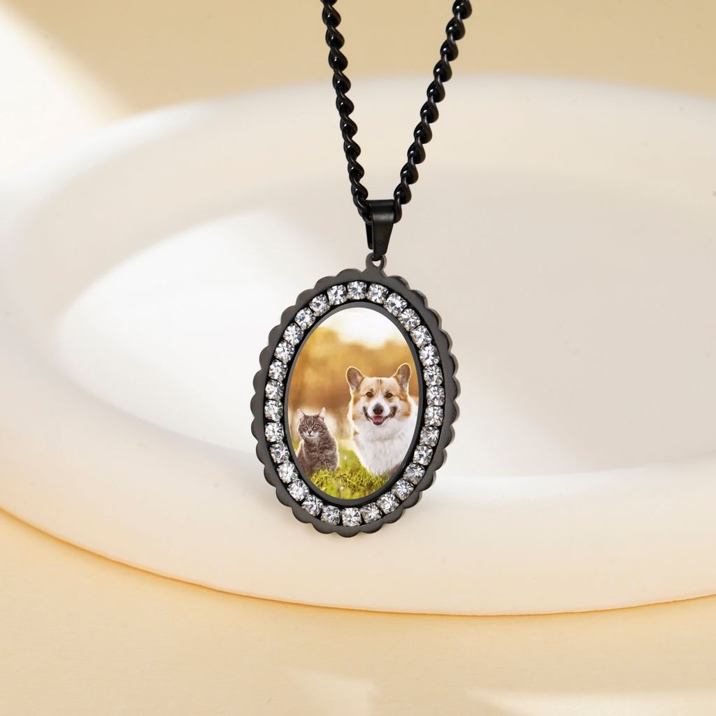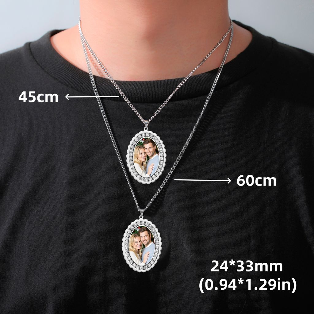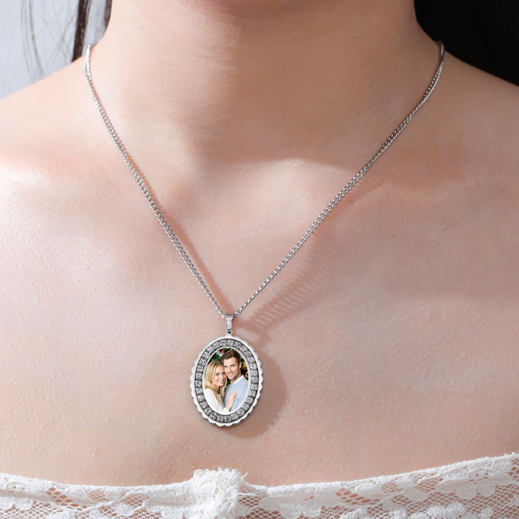 New Personalized Photo Zircon Oval Pendant Necklaces for Women Men Stainless Steel Personalization Picture Custom Christmas Gift