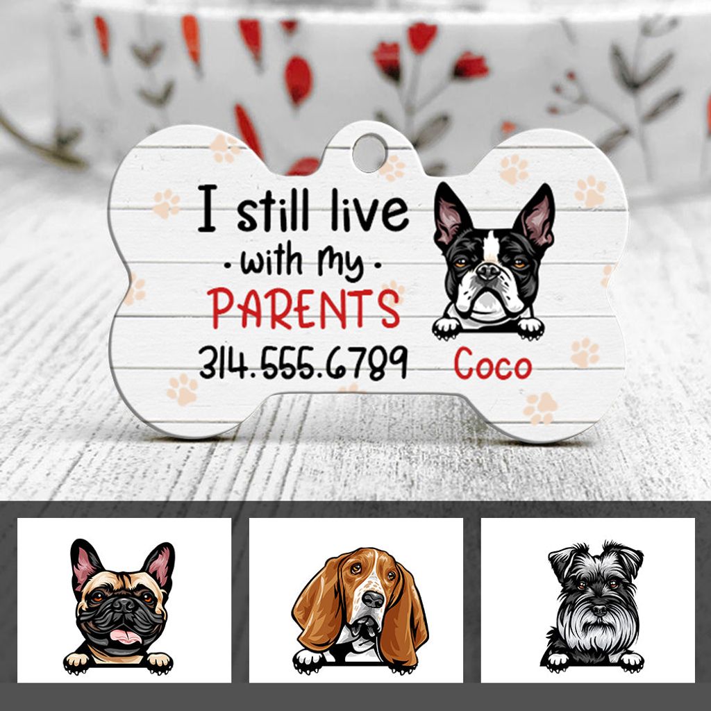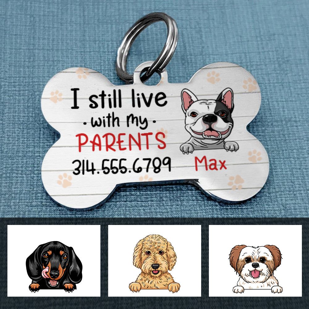 Personalized Dog Mom Live With Parents Bone Pet Tag NB52 85O57